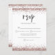 Um valor para o alternativo do ORÇAMENTO em tamanho menor de 4,5 x 5,6" de semirbrilho de 110 lbs, que é de espessura semelhante a um cartão postal (no entanto, não é adequado para uso como cartão postal). POR FAVOR, OBSERVE QUE HÁ UM convite por folha. RSVP de Casamento de Script Glitter Dourado rosa. Rosa dourado borda o topo e o fundo em cada lado e uma tipografia elegante para o título RSVP e o resto do texto que você pode personalizar facilmente.