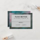 Um padrão de abstrato contemporâneo maravilhosamente luxuoso de textura de lavagem de tinta marmoreada em tons de joias de teal, roxo, rosa e preto no fundo deste cartão de resposta do casamento para incluir como uma inserção com seus convites de casamento. As cores de tom de joia muito rico são uma escolha adorável para outono ou casamentos no inverno. Personalize o modelo de texto com a data de RSVP necessária.