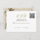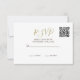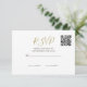 Uma palmeira elegante está no reverso desta placa RSVP. Elegante design de casamento formal moderno. A informação no verso é facilmente alterada para a sua... mudou as palavras para a sua. O script moderno é facilmente alterado para suas próprias informações personalizadas. Substitua o código QR pelo seu ou exclua completamente. Uma ideia simples para que seus convidados possam facilmente responder a seus convites de casamento com um carrapato rápido. Elegante design de casamento formal moderno.