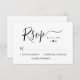 Os cartões RSVP de casamento preto e branco minimalistas elegantes apresentam um design de tipografia na moda com roteiro de caligrafia. Com um monograma de Casal com um pequeno humor cardíaco. Texto personalizado minimalista que pode ser personalizado com a data de vencimento do RSVP. O design inclui uma linha para nome(s) de convidado, participação de evento e o número total de convidados presentes.