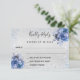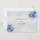 Um fundo com aparência de prata falsa, decorado com faíscas cintilantes prateadas e flores azuis, flores. Personalize e adicione a resposta por data e seus nomes.