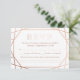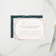 Um cartão moderno e contemporâneo de resposta ao casamento no inverno, apresenta um padrão geométrico de rosa de ouro "folha falsa" sobre um fundo de turquesa escuro. Todos os seus detalhes estão soletrados num belo magnífico erro tipográfico moderno. Eu ofereço um serviço de personalização gratuito, se você tiver algum pedido especial, envie-me um e-mail para: margherita@bluebirdinvites.com Correspondência com a postagem dos EUA está disponível aqui: http://www.zazzle.com/collections/geometric_winter_wedding_set-119231006408651896 Clicando no botão personalizar você pode acessar as ferramentas de edição e mudar a cor de fundo, digitar e muito mais Nota ______________________________________________________________________________________________________________________________________________________________________________________________________________________________________ A cor de cobre metálica não é uma folha de papel real, é apenas um efeito de cor _______________________________________________________________________________________