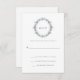 Esta moderna, romântica placa RSVP apresenta uma coroa composta por flores de pénia azul e púrpura, e muitas folhas e sotaques botânicos. Usamos arte de LABFcreations.
