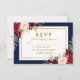 RSVP de Casamento Floral de Azul Dourado e Borgonh
