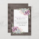Cartões de resposta de casamentos de chic country com fundo de celeiro de madeira rústico, uma tela de canto suculenta e um modelo de texto rsvp rústico que é fácil de personalizar.