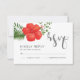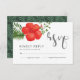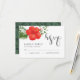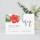 Modelo de RSVP de Casamento, com folhagem tropical exuberante e sotaques florais coloridos. O padrão no sentido inverso, das folhas verdes claras, é definido na cor de fundo de sua escolha. Use o modelo fornecido para personalizar os detalhes do evento. Procure ID475 para ver outros produtos com este design, incluindo convites de casamento correspondentes e muito mais.