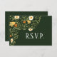 Um anúncio de casamento verde com um tema floral de flores e vinhas em espiral sobre um fundo verde escuro, este cartão decorativo de RSVP floral seria perfeito para um tema de casamento de jardim. Por favor, note que tem um convite de casamento correspondente que você pode ver aqui: https://www.zazzle.com/green_floral_wedding_invitation-256325537398693372