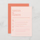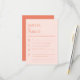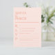 Adicione à sua suíte de papelaria de casamento com nosso cartão RSVP minimalista, projetado para corresponder ao nosso conjunto de convites de casamento laranja minimalista. Esta placa apresenta um fundo cor de laranja claro, fazer fácil para seus convidados escrever suas respostas. O texto está em uma fonte laranja vibrante que corresponde ao plano de fundo do convite neste conjunto, garantindo um estilo contínuo. A tipografia cuidadosamente projetada complementa a estética geral, combinando simplicidade e funcionalidade. Perfeito para casais que valorizam o design moderno e coeso, este cartão RSVP é a adição ideal aos seus preparativos de casamento.
