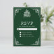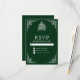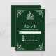 Cartão RSVP Elegante com uma elegante fronteira ornamentado branca e "Bismillah" na caligrafia árabe contra um fundo verde escuro.