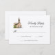 Cartão de RSVP de casamento na igreja com ilustração em aquarela de uma igreja.
