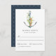 Com charme submarino encantador, esta design de carta de resposta náutica única e bela mostra uma âncora de barco com um cavalo marinho e algas marinhas puxadas para fresco do oceano. As aquarelas moles adicionam uma qualidade artística ao fazer design cada carta uma pequena obra de arte. A design é simples e elegante com um olhar minimalista energizado pelos elementos da vida marinha. Este cartão RSVP é uma escolha maravilhosa para casamentos costeiros de praia, casamentos de destino ou casamentos feitos em um navio de cruzeiro, iate ou numa marina barco ou clube country. Personalize o modelo de texto com a data de resposta necessária.