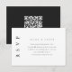 Este moderno cartão de resposta de casamento preto e branco inclui um lugar para o seu código QR para que os convidados possam facilmente consultar o seu site de casamento.