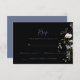 Este rsvp de casamento preto floral de floresta selvagem é perfeito para um casamento rústico. Este design apresenta flores silvestres brancas e azuis pintadas à mão com aquarela com folhagem verde em um fundo preto.