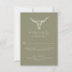 Simples Cartão RSVP de Casamento Russo de Cabeça de Vaca - Um simples cartão de resposta de casamento coordenado com a tipografia moderna e escrita para um sentimento minimalista. O cartão de resposta apresenta um crânio de vaca ao estilo de cowboy rústico em creme de sobremesa com fundo verde de cacto. A placa RSVP faz parte de uma coleção e todos os elementos e cores podem ser facilmente alterados para se coordenar com o seu casamento ocidental. O cartão de resposta inclui a escolha da refeição.