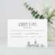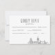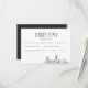 Um cartão RSVP correspondente para o Convite Skyline da Deco Moderna de Londres. Esse RSVP apresenta uma seção específica para uma escolha de refeição e o número de convidados. Um pano de fundo de carvão suave está no lado oposto.