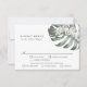 Uma design de cartão RSVP de casamento tropical única que inclui seleções de refeições para 3 entradas. A design apresenta delicadas orquídeas brancas e uma bela folha Monstera em aquarelas moles. A design é simples e elegante com um olhar minimalista energizado pelos elementos botânicos tropicais. Este cartão de resposta ao casamento é uma escolha maravilhosa para casamentos costeiros, casamentos de destino ou até casamentos urbanos que usam um tema tropical mágico. Personalize o modelo de texto com a data de resposta necessária e até 3 opções de refeição para seus convidados.