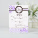 Este RSVP de chás de fraldas personalizável moderno apresenta flores roxas em um fundo de bolinhas roxo e branco. Personalize-o adicionando seus detalhes na fonte de sua escolha!