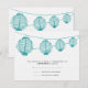 Este belo convite para o casamento mostra a imagem das lanternas japonesas penduradas no topo em cor azul e branca. Procure por Convites no meu compro!