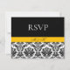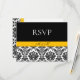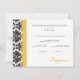 Envie sua correspondência de evento em estilo com este cartão rsvp. Este design apresenta uma cor damasco preta e branca com sotaques amarelos. Conclua a consulta com o convite correspondente. Sinta-se à vontade para entrar em contato comigo através do recurso de mensagem se precisar de assistência com este design ou se quiser adicionar outra personalização. Ou contacte-me por correio eletrônico em zazzlestores@yahoo.com.