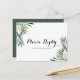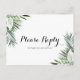 Este cartão postal de RSVP de escolha de menu floral branco de verdura tropical é perfeito para um casamento de destino. O design apresenta buquês de folhas de palmeira verdes com lindas flores brancas.