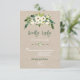 Design de cartão único e elegante com rosas de aquarela branca deslumbrantes, buquê de peônias, um divisor floral com setas como corações, escrita manual moderna "Responda gentilmente", em um fundo de burlap. Use a ferramenta Personalizar para adicionar suas informações, alterar as fontes e a cor do fundo. Para itens correspondentes, visite minha Coleção de Florais Brancas Rústicas em Madeira/Burlap.