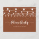 Esta corda rústica ilumina o cartaz do cardápio de terracotta, escolha do cartaz rsvp é perfeito para um casamento clássico. A design apresenta belas luzes de cordas pintadas manualmente em um fundo de terracota.