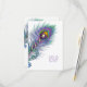 Lindo convite de casamento de pavão roxo lavanda e azul turquesa para RSVP. Este elegante convite de casamento de pavão azul turquesa é facilmente personalizado para o seu evento com a escolha do estilo de fonte, cor e texto na frente e no verso. Este é um design gráfico impresso sem pedras preciosas reais, joias, etc.