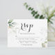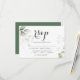 Greenery Dourado deixa um RSVP Recepção de casamento. As flores esmeraldas verdes e brancas são neutras em termos de gênero e são perfeitas para lindos casamentos verdes e dourados.
