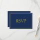 Um belo RSVP azul e dourado este item mostra um design adorável. Excelente para suas festividades de casamento, personalize seus cartões RSVP hoje!