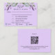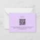 Um fundo violeta, texto preto. Decorado com flores de lavanda e verde de eucalipto. Personalize e adicione a resposta por seleção de data e menu. Fundo: fundo violeta. Adicione o URL do seu site de casamento ao código QR para obter mais detalhes
