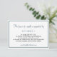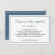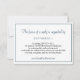 Este simples e moderno gabinete RSVP de recepção de casamento azul empoeirado apresenta um roteiro elegante e inclui a opção de seus convidados responderem através do seu site de casamento, por e-mail ou texto, ou por meio de um cartão de resposta (vendido separadamente). Fácil de personalizar com sua própria data de resposta, site e informações de rsvp.