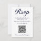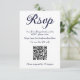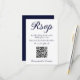 Esta elegante placa RSVP é o companheiro perfeito para os seus convites de casamento. Apresentando um fundo branco e um texto de marinho, este cartão direciona os convidados para o site do seu casamento, onde eles podem facilmente encontrar todos os detalhes do evento e enviar seu RSVP on-line. O verso do cartão tem um fundo de marinho e um texto prateado para os nomes dos casais e a data do casamento.
