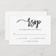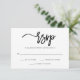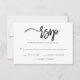 Essas placas RSVP de casamento simples e modernas apresentam a tendência da tipografia de script preto em um fundo branco para uma aparência muito na moda.
