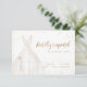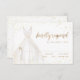 As placas RSVP elegantes apresentam o vestido de noiva branco de cor d'água com detalhes de brilho dourado de brilho falso.