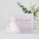 As placas RSVP elegantes apresentam um vestido de casamento branco de cor aquosa com detalhes de brilho rosa dourado brilhante sobre fundo púrpura macio.