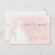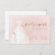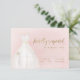 As placas RSVP elegantes apresentam o vestido de noiva branco de cor d'água com detalhes de brilho dourado brilhante sobre fundo cor-de-rosa pincelado.