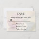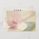 Um cartão mágico de RSVP. Uma flor de cereja solteiro floresce mostrando suas pétalas frágeis e cor rosa macia. Este bonito floral pode ser visto sentado sozinho numa placa de porcelana branca colocada numa mesa. Um design suave e delicado.