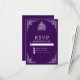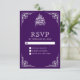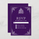 Cartão RSVP Elegante com uma elegante fronteira ornamentado branca e "Bismillah" na caligrafia árabe contra um fundo roxo escuro.