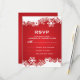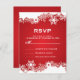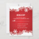 Placa de resposta RSVP de casamento no inverno branco vermelho Snowflake, com borda branca de flocos de neve sobre fundo vermelho brilhante. Uma escolha perfeita para os casamentos de dezembro de inverno.