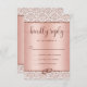 Esta rosa de design de RSVP de ouro de tendência corresponde aos convites para casamentos tema damasco metálicos. O amortecedor rosa dourado sobre a parte superior e inferior é acentuado com anéis de casamento, e enquadra a tipografia do roteiro. O monograma da noiva e do noivo está no verso em uma elegante fonte limpa de script. **Não existe ouro rosa, tinta metálica ou brilho neste item. São simulados os detalhes do ouro e da brilha do rosa.
