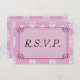 Um anúncio de RSVP de casamento muito elegante e personalizado em rosa suave / rosa, parte do conjunto de estórias de casamento 'Rosa cor-de-rosa' que inclui uma rosa claro e cor damasco branca com ornamentos decorativos cor-de-rosa.
