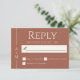Simples, elegante e saboroso, este clássico design de cartão RSVP de casamento de terracota apresenta uma fina linha de fronteira ao longo da borda esquerda com o monograma da noiva e do noivo. Uma combinação de fontes serif elegantes de eterno emparelhada com uma fonte de script tradicional é combinada com belos resultados. Este esquema de cores é uma escolha popular para casamentos outono com texto esbranquiçado adiciona à simplicidade limpa deste design.