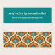 O tema do Boho Chic Retro 70, o site de casamento rsvp mini card. Típica de tendências em bege arenoso em fundo lacrimogênio. A parte traseira da placa apresenta o padrão ikat estilo 70 na paleta de cores rústica retrorreflectora.
