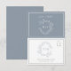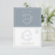 RSVP Dusty Blue Leafy Crest Monograma Cartão de Casamen