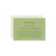 Faça uma declaração de elegância subestimada com este simples e clássico cartão de resposta de assento de casamento baseado em texto em verde-folha. Use a opção de personalização para mudar toda a cor para se adequar ao seu tema de casamento. Personalize todo o texto deste cartão de inserção de RSVP on-line e ajude a direcionar seu convidado para o site do casamento para obter informações adicionais, enquanto salva algumas árvores e dinheiro no correio de retorno.