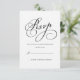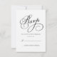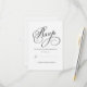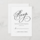 Este cartão de resposta apresenta as letras "rsvp" em um script preto elegante. Os campos de texto são personalizáveis e podem ser alterados, se desejado.
