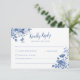 RSVP elegante com fonte caligráfica e floral azul