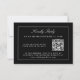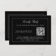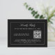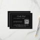Simples e elegante, este cartão RSVP de casamento em preto clássico tem uma fina borda branca na frente e no verso e texto branco que pode ser editado conforme desejar. Ele usa a tecnologia moderna de Código QR para permitir que você forneça um link para o seu site de casamento para que seus convidados postem suas respostas. O layout de texto clássico inclui script elegante mesclado com o tipo de serif de eterno para apresentar suas informações de forma inteligente e simples.