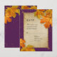 Cartão de resposta RSVP correspondente para retornar à noiva para uma contagem exata de convidados. Inclui envelopes brancos gratuitos. Um fundo roxo de berinjela profundo parte desta brilhante design de casamento em folha de outono foi criada da trabalho de arte que foi pintada manualmente por Audrey Jeanne Roberts e então desenhada graficamente para este simples, moderno e limpo conjunto de convites de casamento com produtos correspondentes para chás, recepções e eventos formais. Folhas de outono que transformam as cores do vermelho brilhante em laranja, dourado e abacado em pedaços verdes das árvores e são colocadas sobre uma simples borda de folha de ouro em estilo de deco, papel de pergaminho em estilo de vintage angustiado vestido, manchado de chá e confete como brilho dourado sujo, esplendores para um toque final. Do lado oposto estão as folhas e bolinhas cintilantes e brilhantes.