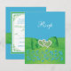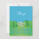 Este elegante e romântico cartão de confirmação de presença para casamento com flores em verde lima e azul Malibu tem uma fita e laço IMPRESSOS com um par de jóias de diamante IMPRESSAS e um broche de corações unidos com brilho FALSO (simulado) que combina com os convites de casamento mostrados abaixo. O texto e o tipo de papel são personalizáveis. ALÉM DISSO, se você redimensionar o convite, ou se você mudar as fontes, ou o tamanho da fonte, parte do design e/ou texto pode ser cortado. Tudo será impresso como você vê no seu monitor. Eu não verei seu convite, e a Zazzle NÃO irá corrigir nada (erros de digitação, desalinhamento, etc.). Se você precisar de ajuda com este convite, por favor me envie um e-mail ANTES de fazer seu pedido. Se você precisar de itens correspondentes, ou